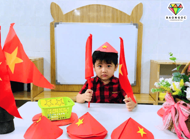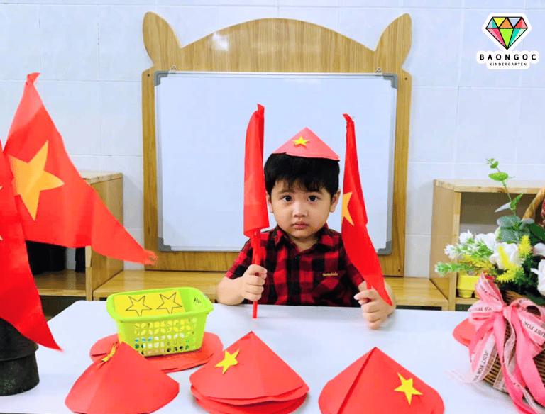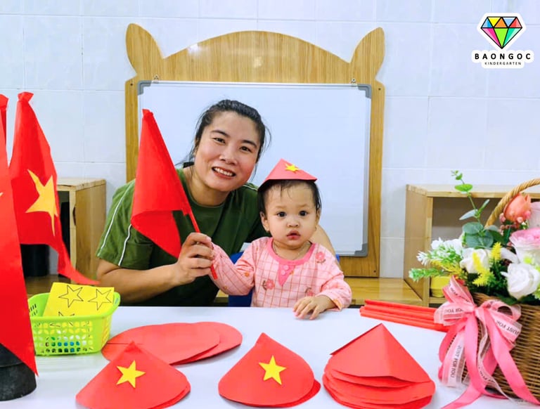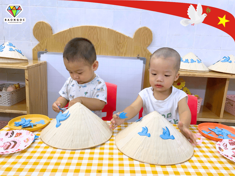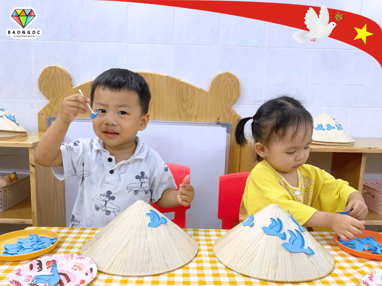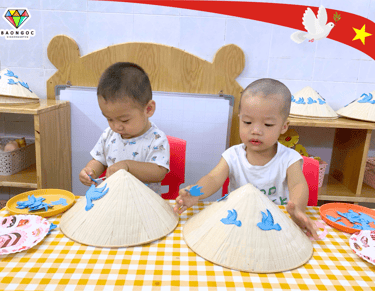 Chào mừng ngày Quốc khánh, các bạn nhỏ đã cùng nhau tham gia hoạt động thật ý nghĩa: làm nón lá rực đỏ, tô điểm với ngôi sao vàng nổi bật – hình ảnh mang đậm dấu ấn Việt Nam.