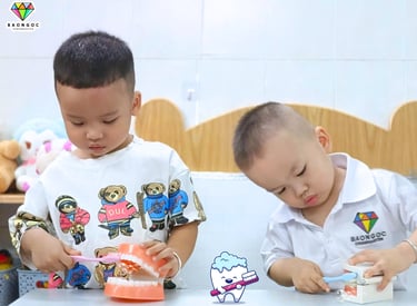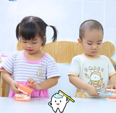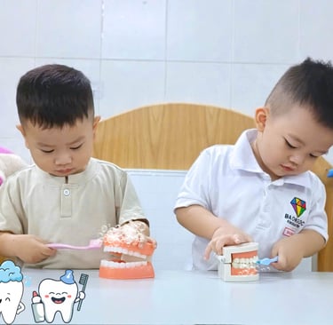 🦷 BÉ THỰC HÀNH ĐÁNH RĂNG TRÊN MÔ HÌNH 🦷