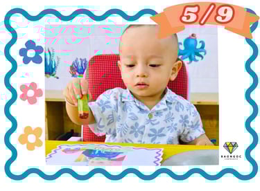 Vận động tinh (Fine motor skills): Dạy trẻ cầm bút màu vẽ, lắp ghép các khối hình đơn giản, đong hạt, đong nước,...