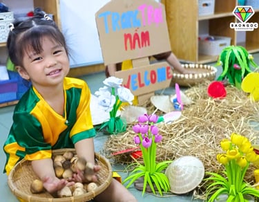✨ Phát triển vận động tinh nhờ thao tác cầm, nắm, đặt nấm nhẹ nhàng vào giỏ.
