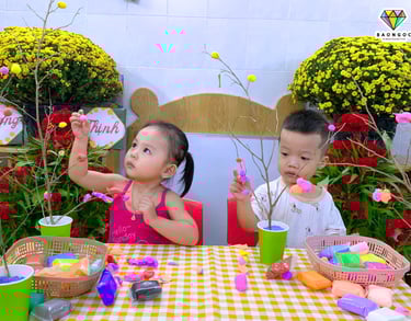 Bạn nào cũng chăm chú, tỉ mỉ, ai cũng muốn gắn thật nhiều hoa để cây đào của mình thêm xum xuê và rực rỡ sắc xuân. Không chỉ là hoạt động tạo hình, việc vò giấy giúp trẻ phát triển vận động tinh, tăng sự linh hoạt của các cơ ngón tay. Bên cạnh đó, các con còn học được kỹ năng lấy keo dán vừa đủ, sao cho giấy không bị ướt hay rách – một kỹ năng nhỏ nhưng rất quan trọng 🖐️🎨
