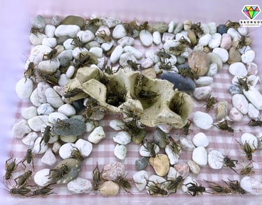 Con dế có màu nâu đen, thân nhỏ và có thể phát ra âm thanh “rích rích” rất đặc trưng. Thông qua hình ảnh và mô hình trực quan, các bé được quan sát đặc điểm của con dế và biết rằng dế thường bò trên mặt đất hoặc trong các bụi cỏ.
