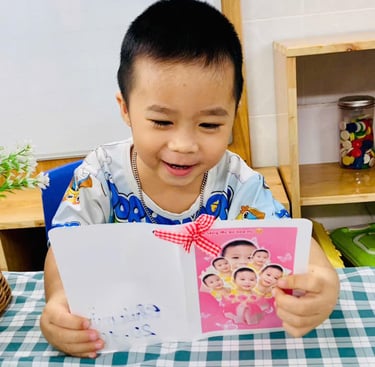 Với đôi bàn tay khéo léo, các bé đã tỉ mỉ cắt dán từng bông hoa nhỏ, lựa chọn những hình dán xinh xắn và phối màu thật hài hòa để tạo nên những tấm thiệp thật đáng yêu. Mỗi nét vẽ, mỗi họa tiết đều chứa đựng biết bao tình yêu thương và lòng biết ơn mà bé muốn gửi đến mẹ – người luôn yêu thương, chăm sóc bé từng ngày 💖.