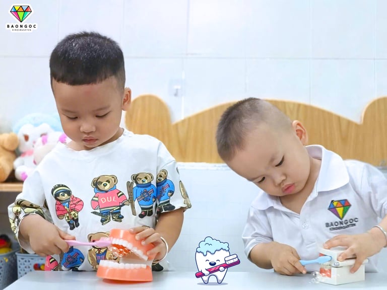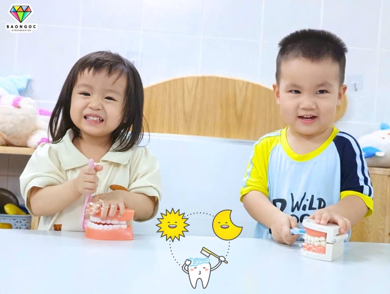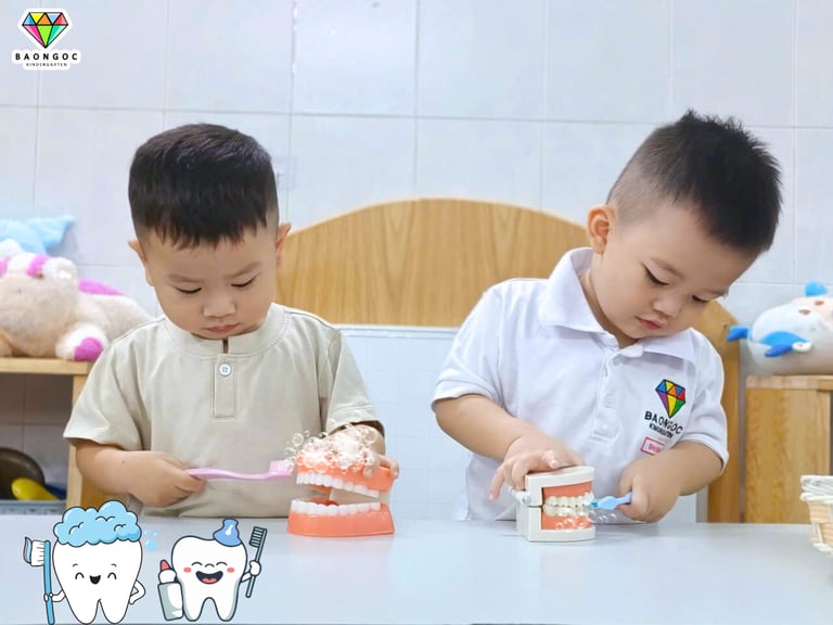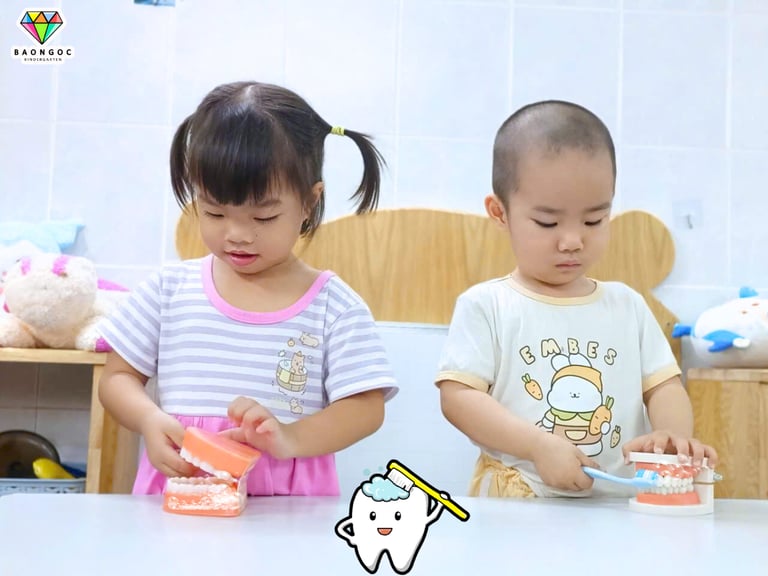 Qua hoạt động này, bé được nhận biết cấu tạo của hàm răng gồm nướu và răng, hiểu rằng răng giúp bé nhai và nghiền nát thức ăn, giúp cơ thể hấp thụ dinh dưỡng tốt nhất
