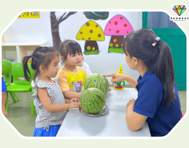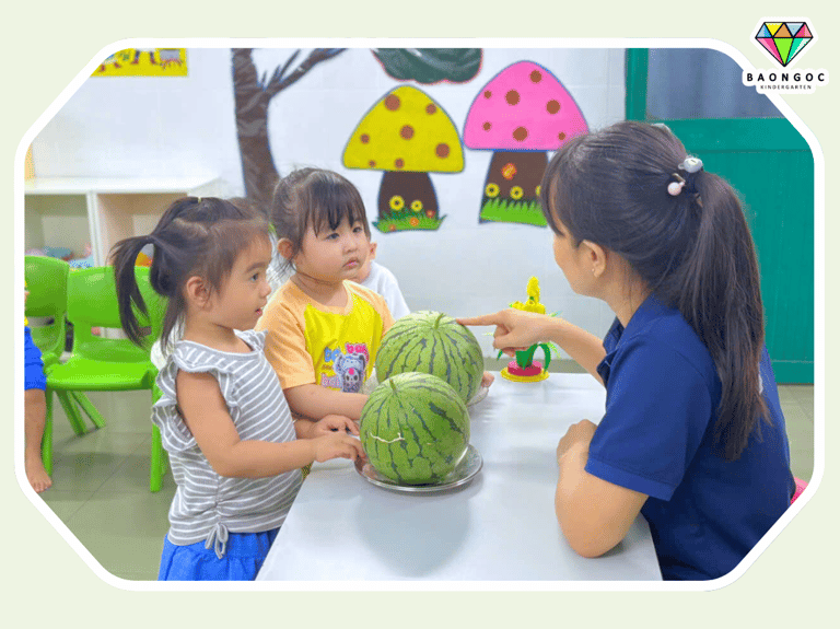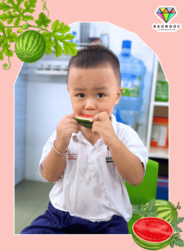 Các bạn nhỏ đã có chuyến tham quan vườn trường thật vui và bổ ích. Các bé được tận tay thu hoạch dưa hấu, khám phá xem bên trong quả dưa có gì, rồi cùng nhau thưởng thức vị ngọt mát lành từ chính những trái dưa do bác trồng cây của trường chăm sóc.