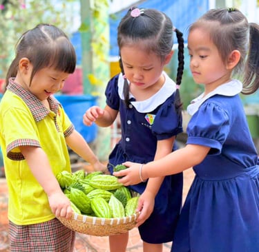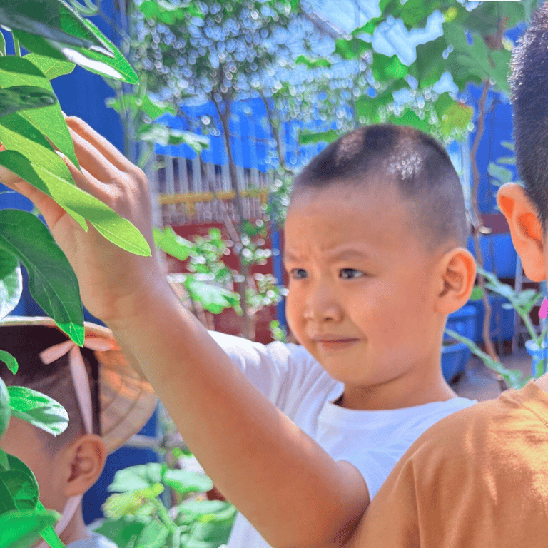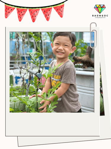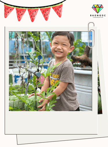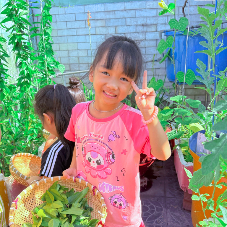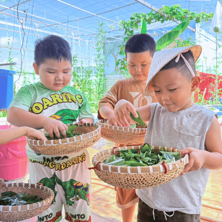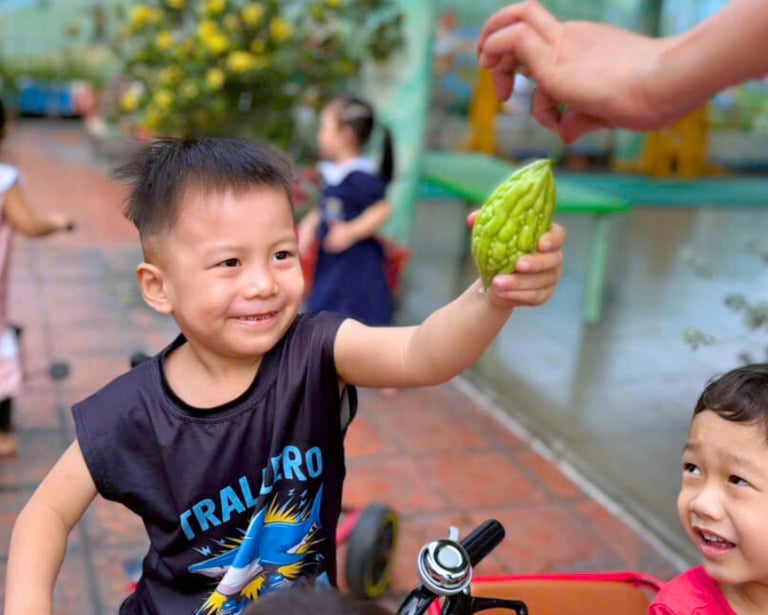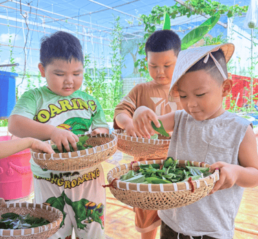 Mỗi bước đi trên con đường nhỏ trong vườn rau là một bước gần hơn với thiên nhiên. Các bé như những nhà thám hiểm nhí, không ngừng đặt câu hỏi, không ngừng khám phá. Và từ những điều tưởng chừng đơn giản ấy, tình yêu với môi trường sống xung quanh cũng được ươm mầm một cách tự nhiên và đẹp đẽ.