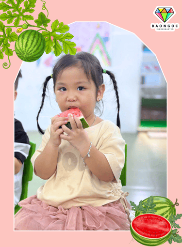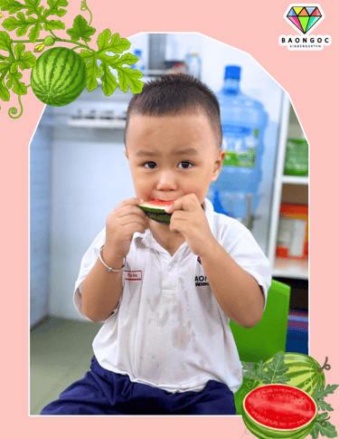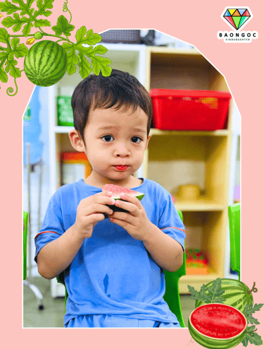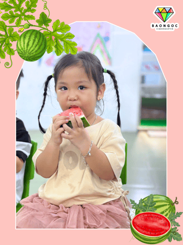 Dù quả dưa hấu ở vườn trường có thể nhiều hạt hơn và màu nhạt hơn so với dưa siêu thị, nhưng điều đặc biệt là các bé được quan sát hành trình lớn lên từng ngày của cây dưa hấu: từ chiếc lá xanh mướt, đến những chiếc cuốn xoăn tít, rồi hoa nở, quả lớn dần. Qua đó, các con học thêm thật nhiều điều hay về thiên nhiên, về sự kiên nhẫn và chăm sóc cây trồng. 🌿