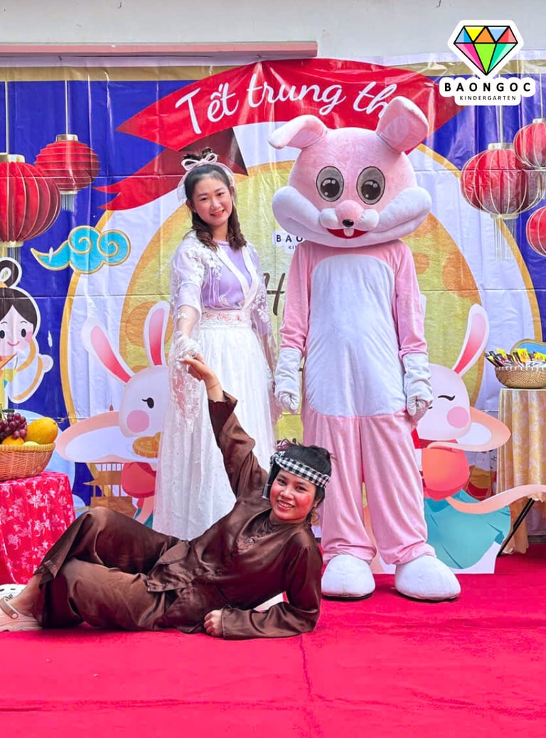 Chú cuội và chị Hằng mải mê rong chơi trên cung trăng nhìn thấy những nét mặt hồn nhiên đáng yêu của các bé trường MN Bảo Ngọc, chú Cuội và chị Hằng phải bay xuống chơi với các bé nè.