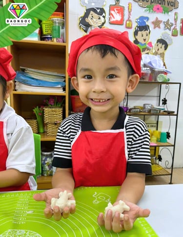 Qua hoạt động này, bé không chỉ học thêm một kỹ năng sống mà còn cảm nhận được niềm hạnh phúc khi tự tay làm ra món ăn cho mình.